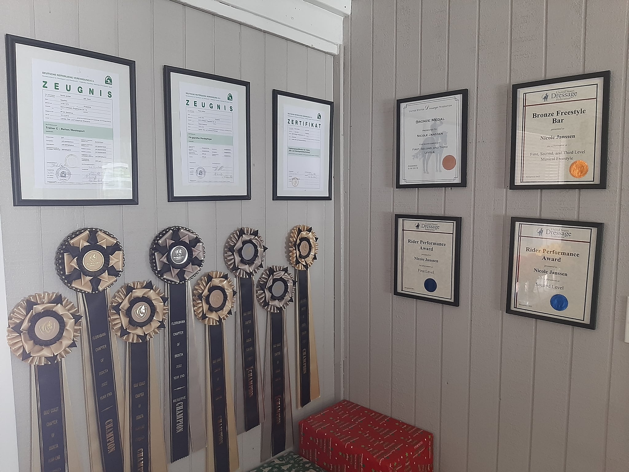Daily turn out weather permitting in green pastures with automatic waterers and shady trees or run in sheds